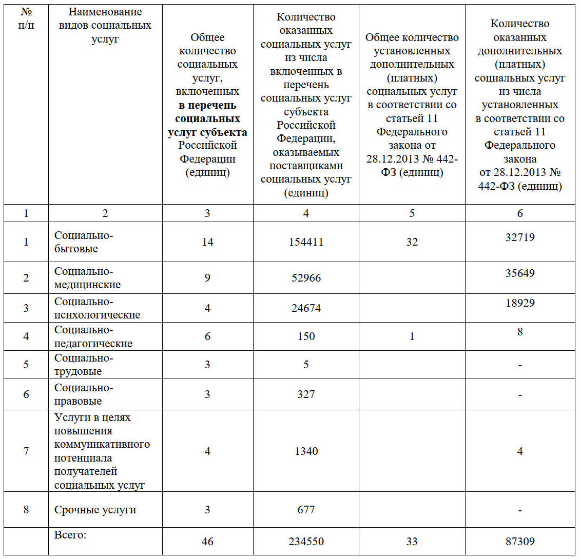| Общее количество мест, предназначенных для предоставления социальных услуг | Наличие свободных мест, в том числе по формам социального обслуживания |