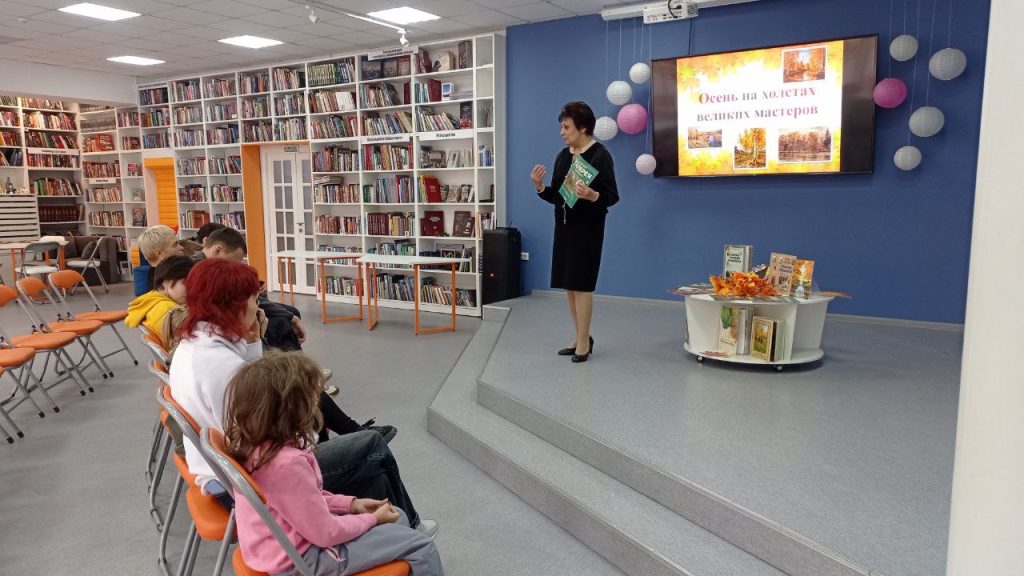 Детей и их родителей познакомили с картинами художников, которые старались поймать и запечатлеть красоту русской осени. Присутствующие насладились красотой полотен Василия Поленова, Исаака Левитана, Юлия Клевера, Ивана Шишкина.