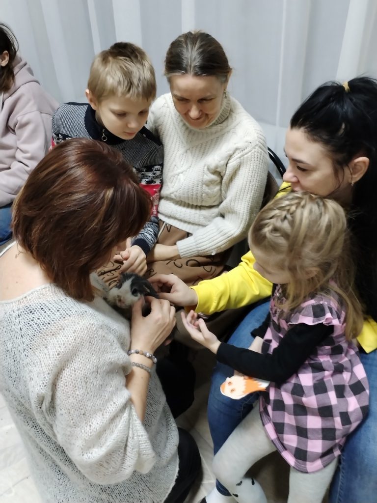Приглашенные на мероприятие дети и их родители познакомились с дружелюбными зверьками – морскими свинками. Ребята узнали почему этих животных назвали «морскими» свинками, о различных породах, условиях их содержания и образе жизни. Дети смогли понаблюдать за поведением морских свинок и погладить их.
