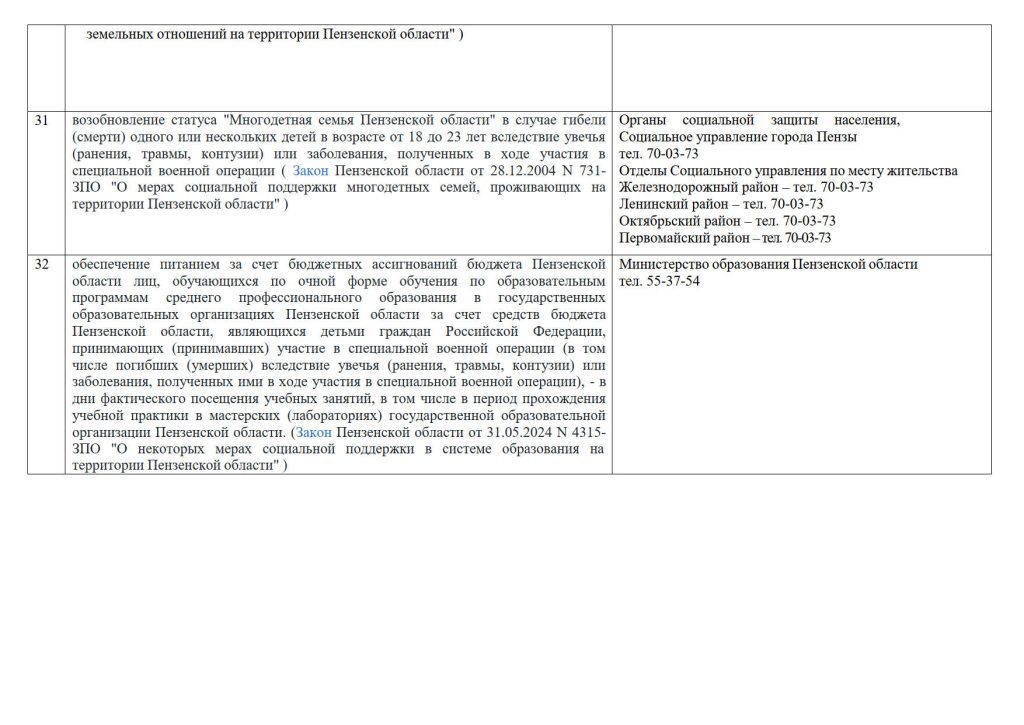 — кратковременный присмотр и уход за детьми до трех лет в организациях социального обслуживания, а также на дому — «социальная няня» (заявление направляется в ГКУ Пензенской области «Ресурсный центр социального обслуживания населения», тел. для справок: 8-841-2-20-08-08); — получение в прокат предметов первой необходимости для детей в возрасте до 2-х лет (с заявлением необходимо обратиться в организацию социального обслуживания населения по месту жительства)
