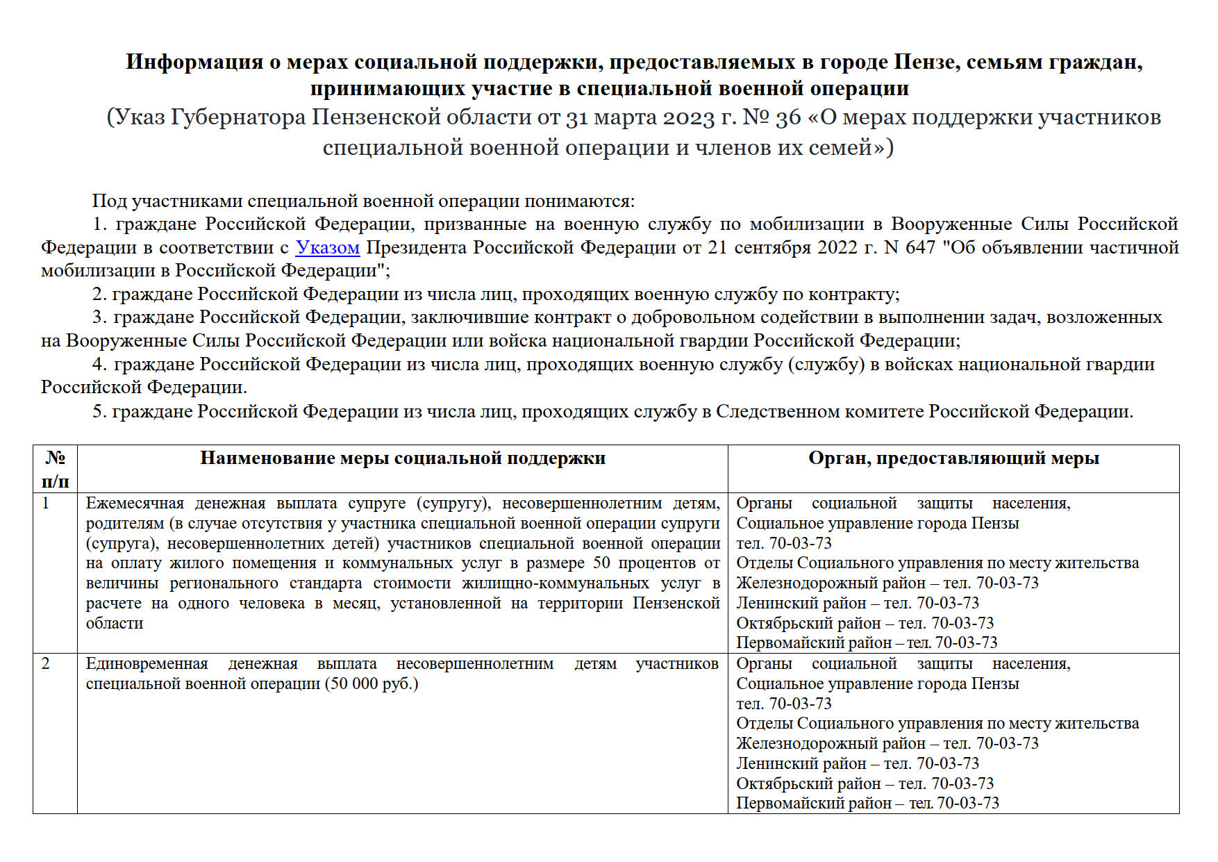 — оказание услуг по перевозке граждан, принимающих (принимавших) участие в СВО и ставших инвалидами вследствие военной травмы, до объектов социальной и иной инфраструктуры и обратно. Телефон Единой диспетчерской службы 8 906 157 94 04;