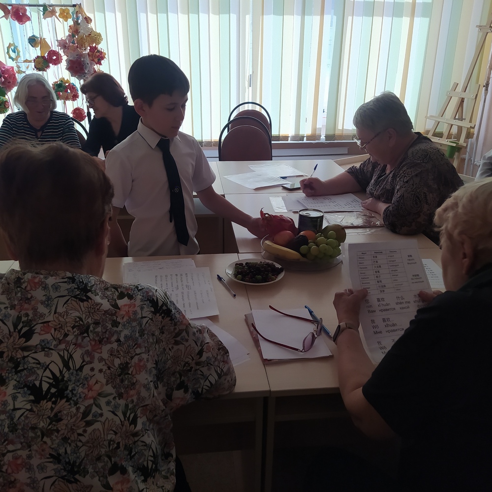 Пожилые люди повторили основные требования к произношению звуков в китайском языке, изучили названия фруктов, цифр от одного до десяти, закрепив знания гимнастикой-разминкой.